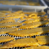 わんちゃんのおやつは原材料はさつまいものみ、農薬・化成肥料・除草剤すべて不使用の飼い主さんも食べられる干し芋です。すべて手作業で加工しており、しっかり干した「かため」と「やわらかめ」がございます。